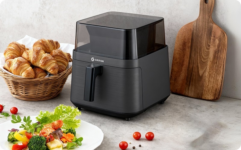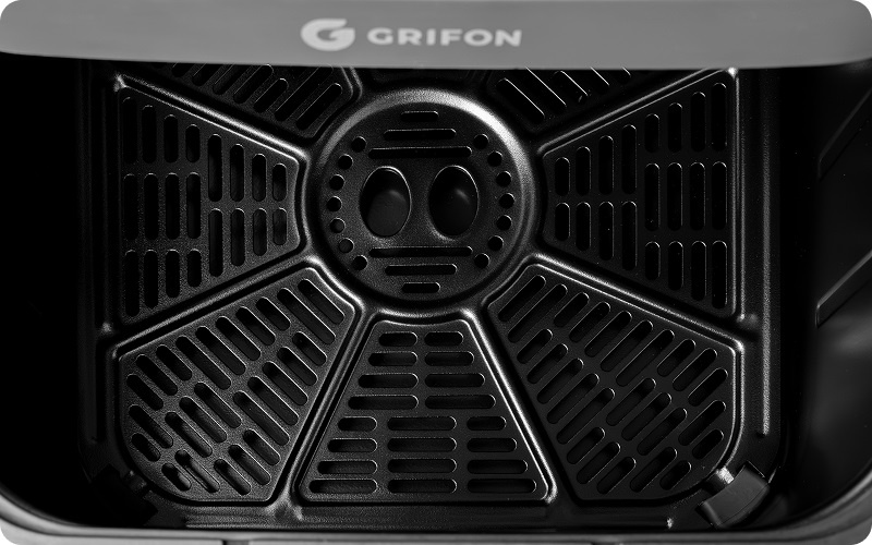 Мультипіч Grifon дозволяє готувати з меншою кількістю жиру* завдяки інтенсивній циркуляції гарячого повітря. Страви виходять апетитними та рум’яними без додавання олії. Прилад споживає значно менше електроенергії, ніж духова шафа** та більшість аналогів, тому стабільно працює навіть від портативної power station потужністю 1,5 кВт — без перевантажень і втрати продуктивності.